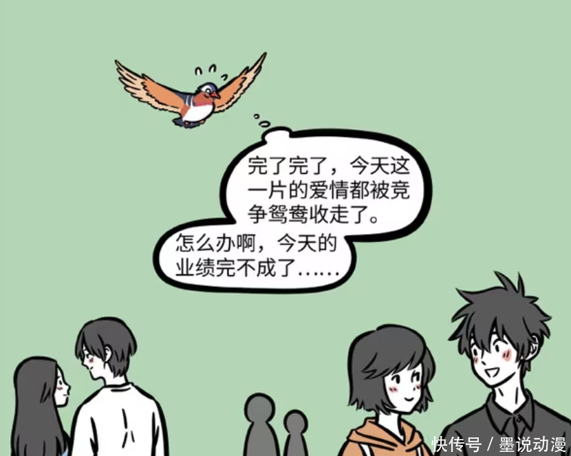 《非东说念主哉》漫画版,媒妁有好多辖下,但不是每只鸳鸯王人靠谱。有些鸳鸯勤恳发恳,找寻的确的爱之精华,但偶尔也会发现东说念主类的爱情很贫穷且复杂。还有鸳鸯,因为睡过火,导致找不到爱之精华,是以用昆玉情代替爱情,还企图忽悠媒妁,蒙混过关。