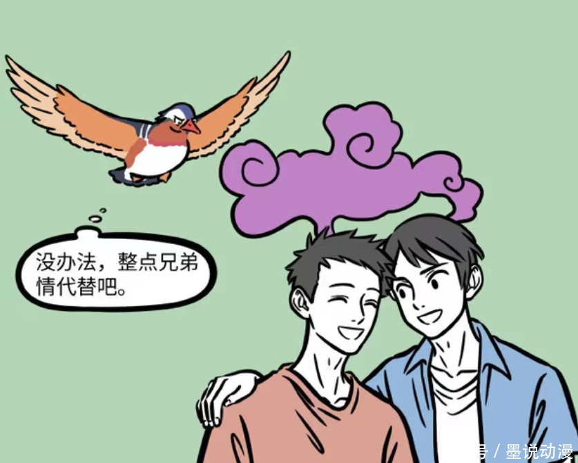 为了支吾媒妁,这只鸳鸯决定整点昆玉情,用它代替爱情。爱情显豁是红色的,昆玉情是紫色的。媒妁照旧分裂得出神采,否则怎样牵红绳,怎样让男男女女有在总共的契机?