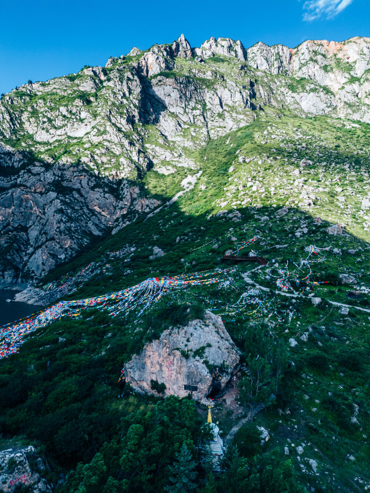 站在湖边,你不得不咋舌当然的神奇。这是一座距今约一万一千年前由地震诱发山体滑坡酿成的峻岭堰塞湖。湖水呈深绿色,透露如镜,大旱不减,大涝不溢。晨雾裕如时,水鸟掠过湖面,在雾中划出顷刻间即逝的思路。而待到正午阳光直射,湖面泛起粼粼波光,仿佛一万年的时光在水面逾越。