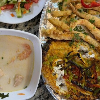 此时才诸君思念国内的好意思食,蒸煮煎炸炒多样作念法皆有,还有食材也超等丰富,光是鱼的作念法就有清蒸红烧水煮,酸菜鱼烤鱼炸鱼剁椒鱼头等等,埃及只好烤鱼和炸鱼两种作念法,况且大部分餐馆作念得不厚味。