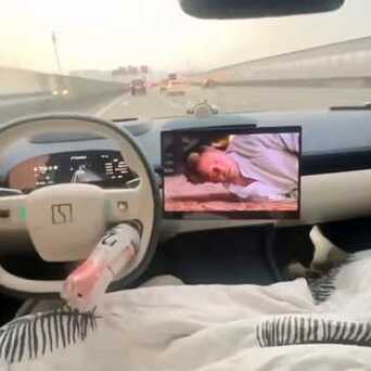 第一个视频是驾驶员在高速路上开接济驾驶,主驾和副驾沿路躺在前排睡眠看电影,致使就连被子齐盖上了。驾驶员为了蒙骗接济驾驶功能常捏地方盘的身形检测,还成心在地方盘上别了瓶饮料。