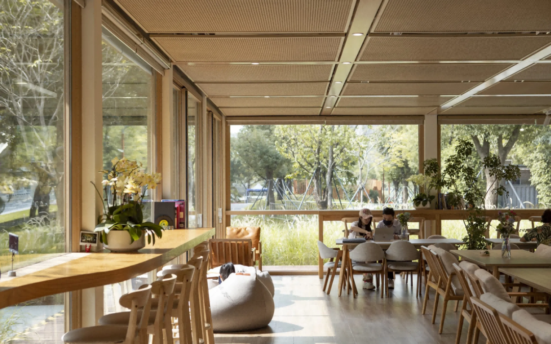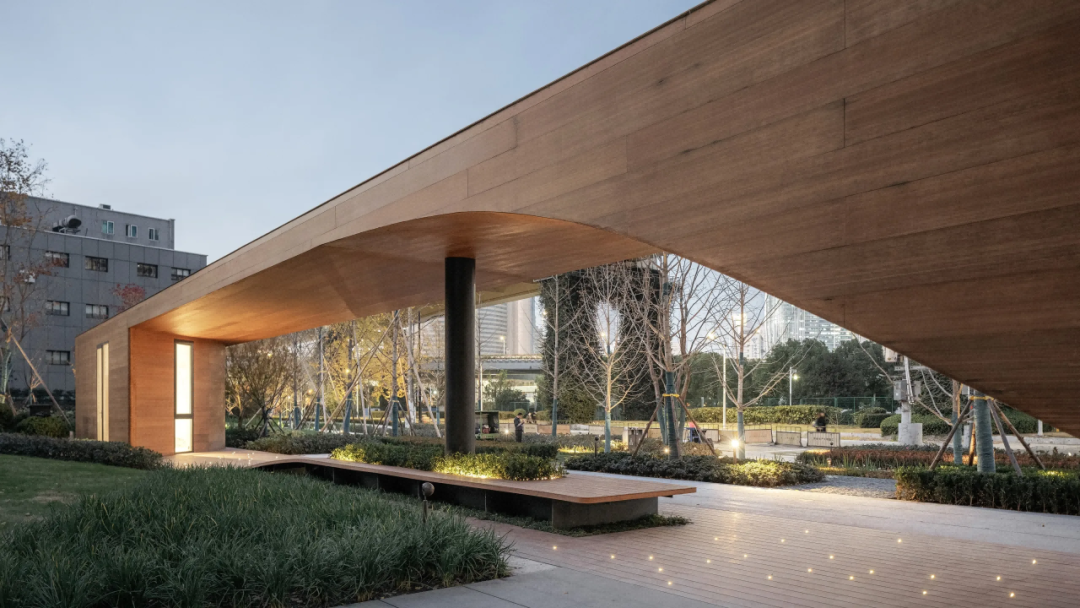 在上海漕溪路口袋公园,技俩以“清风为形”为想象灵感,摄取疏林草地的“公园料想”,连结丰富的林冠线和各样化的植物组合,期许通过驿站达到“拯救城市、激活街区、分享公园城市生涯”。