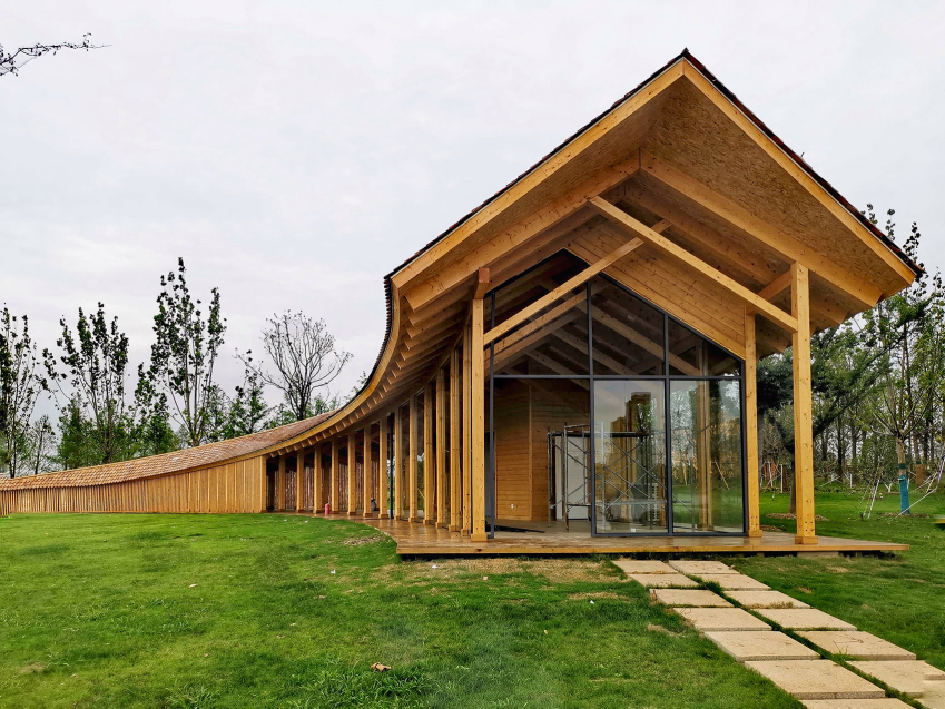 技俩从临江侧看,驿站像是一个微微架空在局面上的出檐深刻、屋顶渺小起翘的大凉亭。反坡屋檐下呈伞状辐射形嘱咐的木檩条成为通盘这个词休息室表里的视觉焦点。