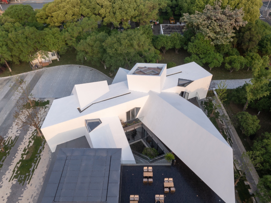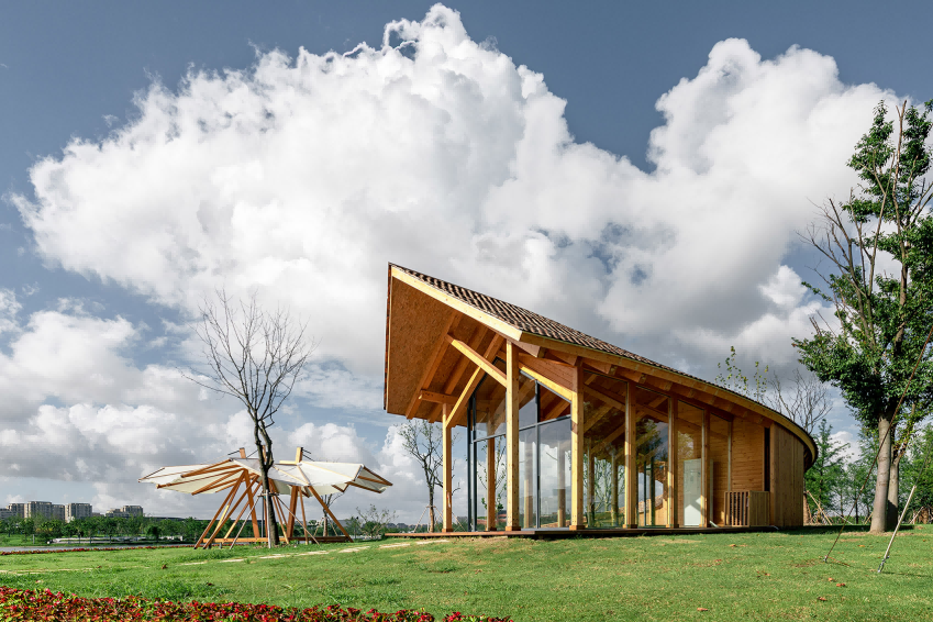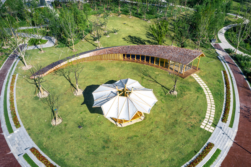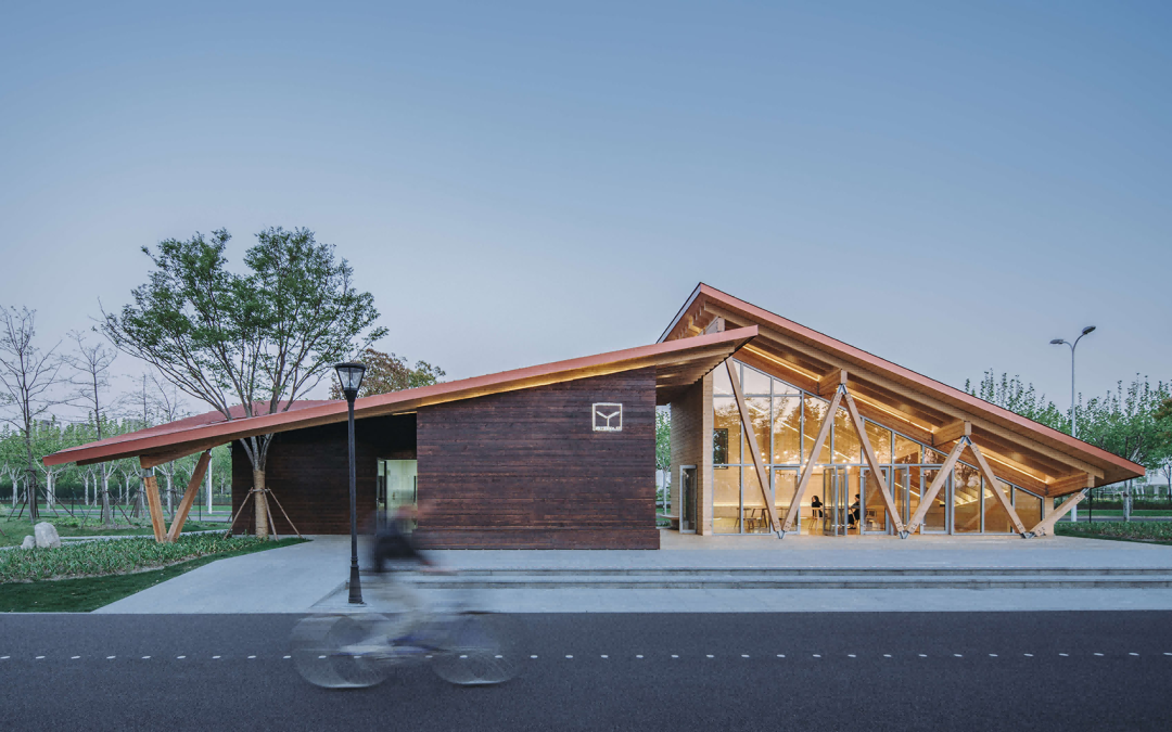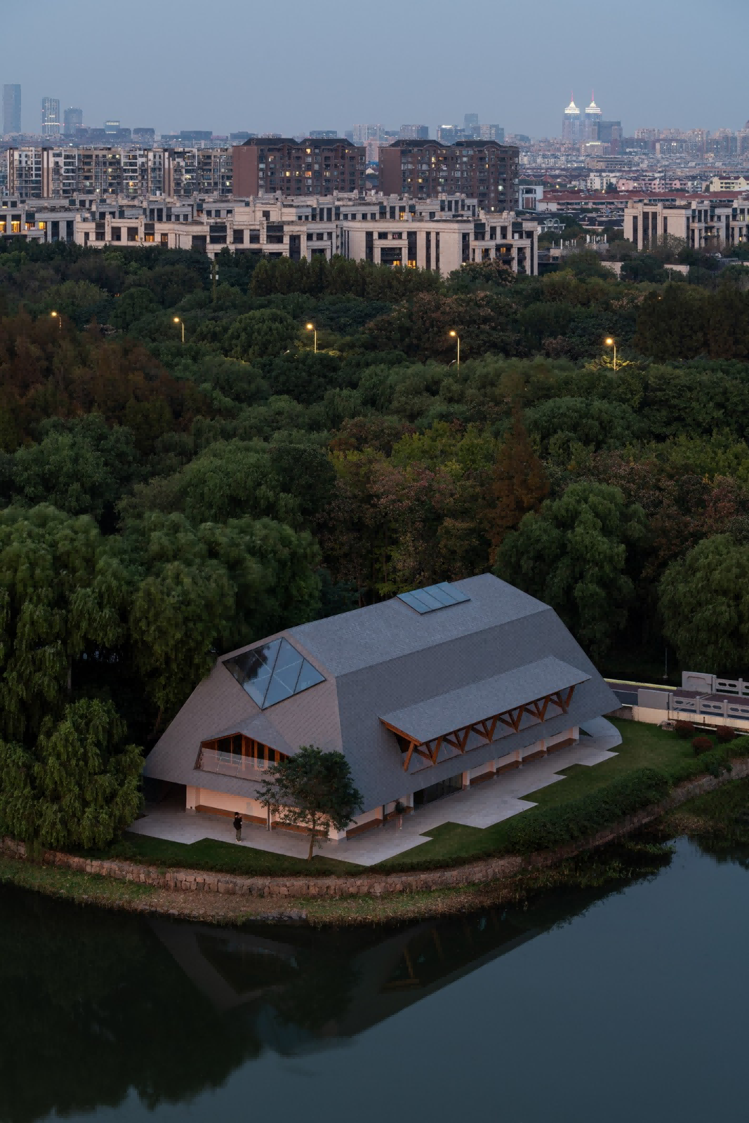 在上海,举座布局以日晷为灵感,呈几何辐射状环绕湖心散播,木构竖立又因不同的样式而呈现出变化的韵律,如同本领的刻度,纪录着这片地盘的宁静与活力。