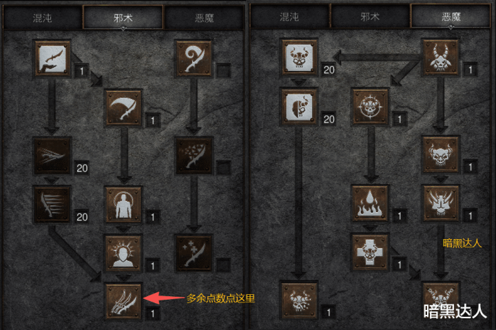 恶魔系:恶魔闪耀20点、血誓20点、物化印章1点、红液喜悦1点、暴食1点、羊头东谈主1点、沾污魔1点、恶浊者1点、照顾恶魔1点