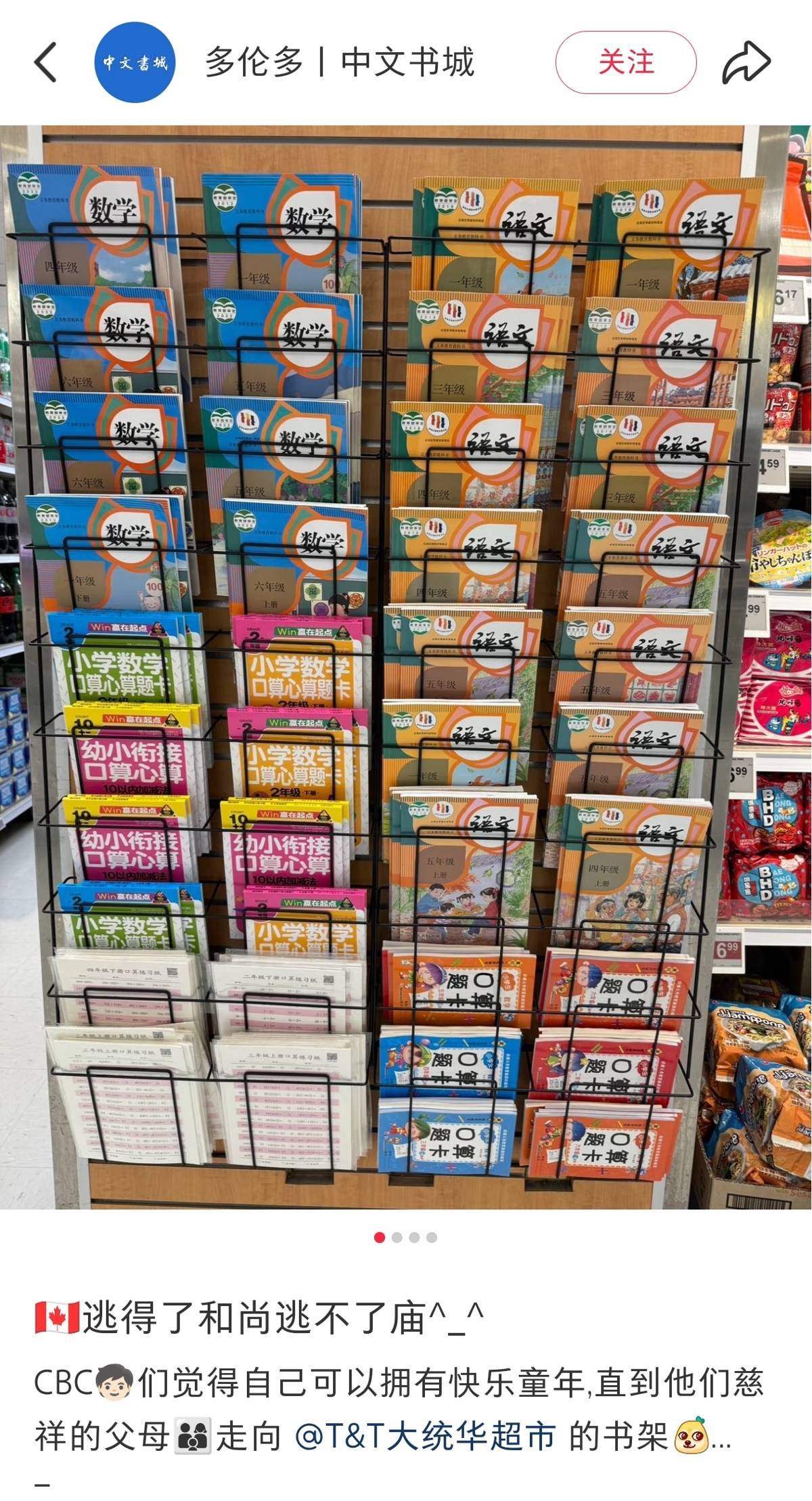 中国教材出现时加拿大超市(图源:多伦多中文牍城官方账号)