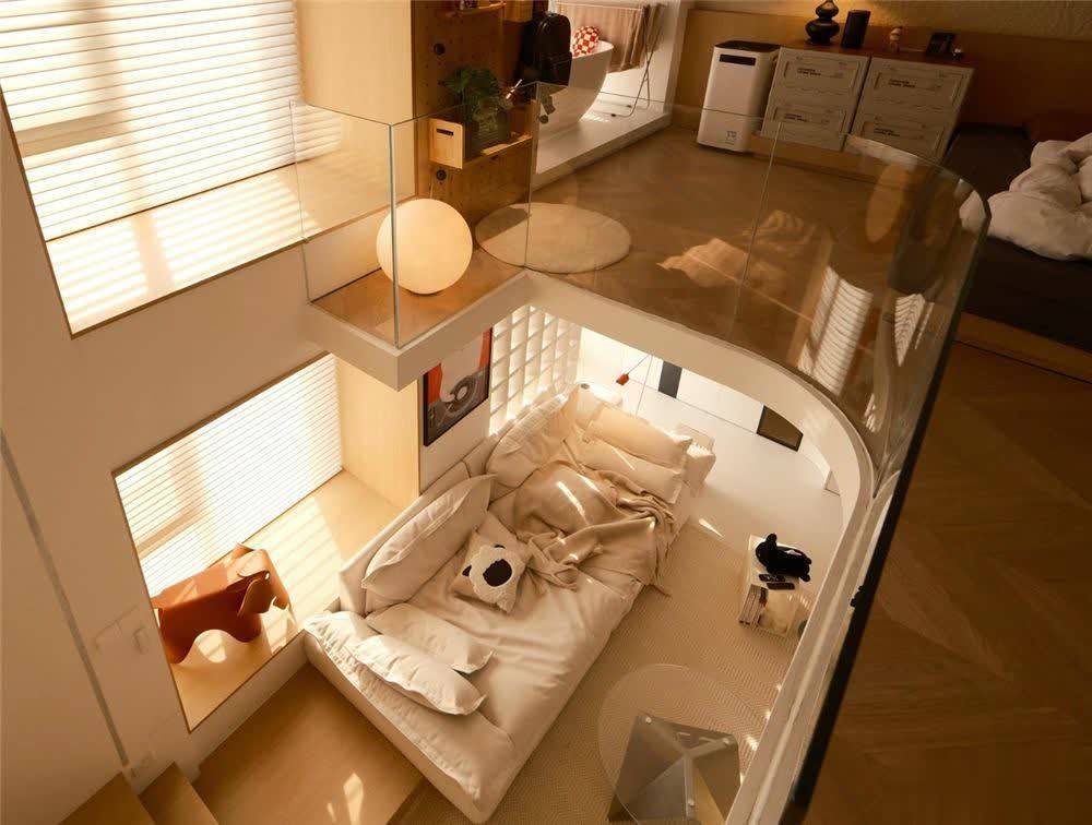 卫生间、厨房挨在一王人,诳骗LOFT的层高一分为二后,二楼也能让他正常立正行走,固然天花板相比矮小,但总比那些只可弯腰躺床上的拼集隔层好了太多。