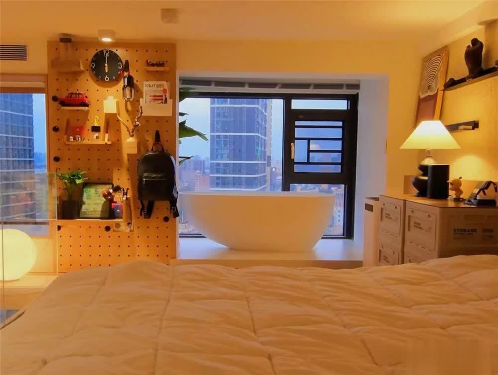 床边,一个浴缸放在窗户边上,不错一边泡澡,一边抚玩长沙城的城市好意思景,光是看着,就有种放心感在内部。