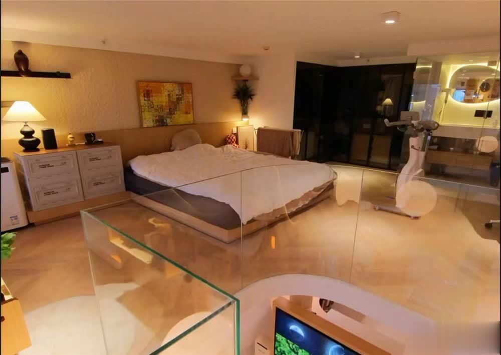 终末,说说LOFT上这隔断层卧室,卧室内一张超大的双东说念主床放在中间,固然是一个东说念主住,但也要富饶广博的就寝区域。
