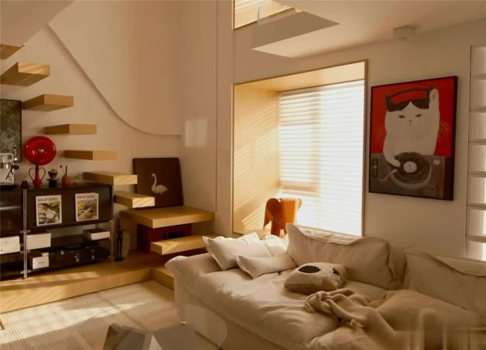 沿着沙发傍边的悬浮楼梯去往二楼,莫得扶手的楼梯其实看上去固然雅瞻念,但却少了些安全感,故意有弊吧。