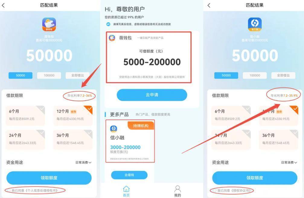 媒体测试发现,欺诈内提供了2款握牌公司的贷款居品,分辩为小薇科技小额再贷款(大连)股份有限公司运营的“薇钱包”和哈尔滨市龙商小额贷款有限包袱公司(龙商小贷)运营的“信小融”。