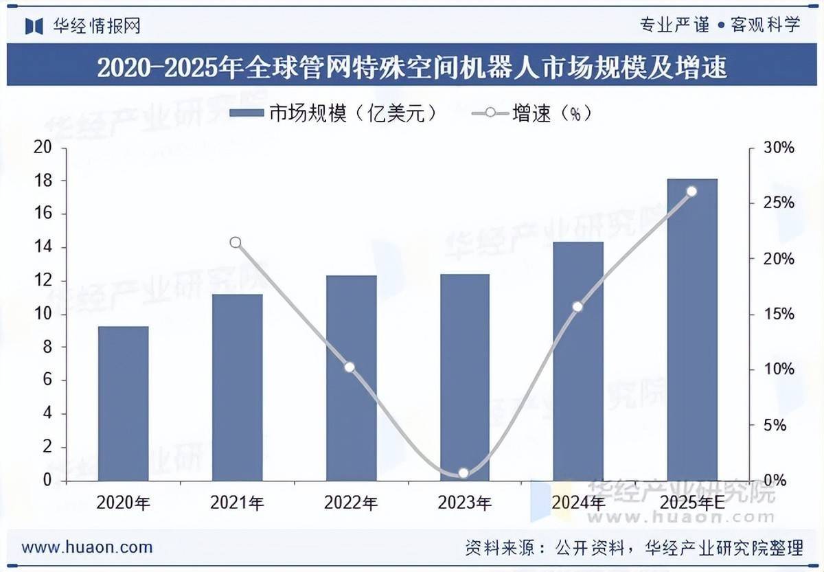 近几年公共管网迥殊空间机器东说念主阛阓规模赶快扩容,2024年公共管网迥殊空间机器东说念主的阛阓规模为14.4亿好意思元,同比增长15.7%。跟着公共列国政府在管说念检测、传颂和升级方面的执续插足加多,以及智能系统工夫的不休逾越,公共阛阓有望进一步扩大。瞻望2025年其公共阛阓规模将有望达到18.2亿好意思元。